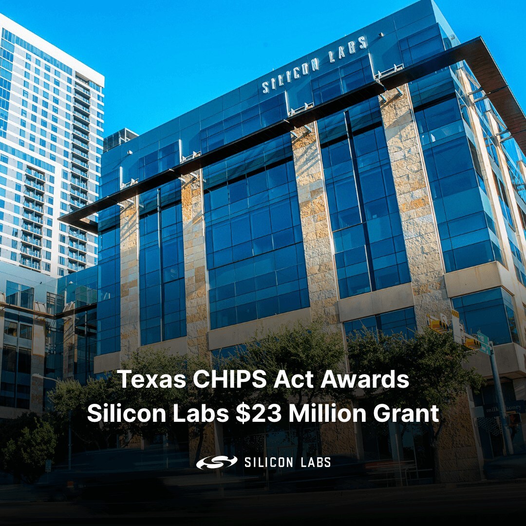 AUSTIN, Texas, Feb. 19, 2025 /PRNewswire/ -- Silicon Labs (NASDAQ: SLAB), a leader in secure, intelligent wireless technology for a more connected world, today announced the award of a $23 million grant from the Texas Semiconductor Innovation Fund (TSIF) established by the Texas CHIPS Act. The TSIF investment will support a new research and development (R&D) laboratory in Austin, helping to create and sustain local jobs and reinforce Silicon Labs' dedication to preserving Central Texas' status as a premier technology hub.